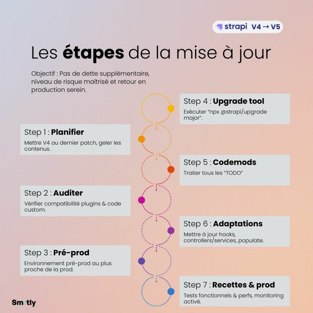 Une migration Strapi V4 → V5 se prépare comme un projet à part entière. L’objectif n’est pas “de passer” en V5, mais d’y arriver sans dette supplémentaire avec un niveau de risque maîtrisé et un retour en production serein.